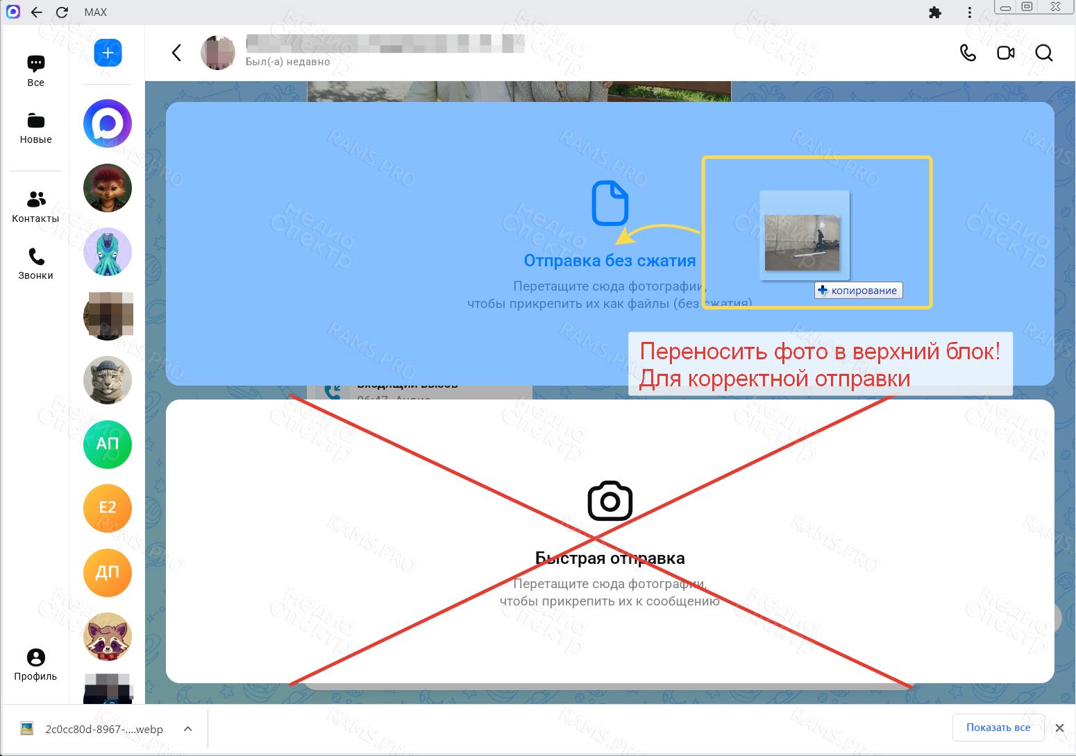 Однако, часто файлы в работу вы передаете нам через мессенджеры, например MAX, Telegram, Whatsapp и др., но в этом случае отправка фотографий и видео происходит в «облегченном формате», и сжимается автоматически для быстрой отправки. Сжатые медиа-файлы зачастую становятся не пригодны для дальнейшей обработки, но есть способ избежать сжатия при передаче файлов, и мы вас с ними познакомим в данной заметке.
